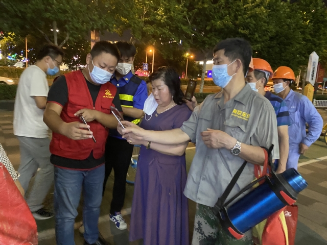 會后,集團(tuán)迅速組織黨員干部組成志愿者隊伍,聯(lián)系建鄴區(qū)認(rèn)領(lǐng)疫情防控志愿工作,趕赴多個社區(qū)協(xié)助防疫一線的核酸檢測工作。集團(tuán)志愿者隊伍每組都由集團(tuán)部室、公司負(fù)責(zé)人帶隊,進(jìn)入工作現(xiàn)場后,他們迅速熟悉掌握工作要求,立即上崗?fù)度胫驹阜?wù)。引導(dǎo)前來進(jìn)行檢測的市民嚴(yán)守疫情防控要求有序排隊進(jìn)場,安撫待檢人員相互配合支持,指導(dǎo)幫助登記掃碼加快工作速度,為老人和困難市民提供方便服務(wù)……在他們與其他志愿者的共同努力下,這幾個檢測點(diǎn)都秩序井然,有效推進(jìn)了檢測速度,減少了市民等待時間。志愿者們把保障核酸檢測有序高效推進(jìn)作為此時踐行初心使命的擔(dān)當(dāng),忘記了炎熱夏夜忙碌的一身汗水,忘記了蚊蟲繞身不停的叮咬,為筑起群眾生命健康防線獻(xiàn)出了一份力量。