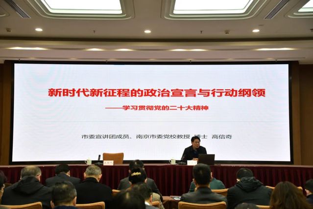 會(huì)上,高信奇教授以《新時(shí)代新征程的政治宣言與行動(dòng)綱領(lǐng)——學(xué)習(xí)貫徹黨的二十大精神》為題,主要從“回顧過去:過去五年的工作和新時(shí)代十年的偉大變革;展望未來:黨的二十大精神的核心要義;把握當(dāng)下:學(xué)習(xí)好宣傳好貫徹好黨的二十大精神”等三個(gè)方面,深入闡述了黨的二十大精神的深刻內(nèi)涵。本次宣講內(nèi)涵豐富、案例鮮活、深入淺出,對于集團(tuán)全體黨員干部職工全面理解、準(zhǔn)確把握和深入貫徹黨的二十大精神具有很強(qiáng)的指導(dǎo)意義。