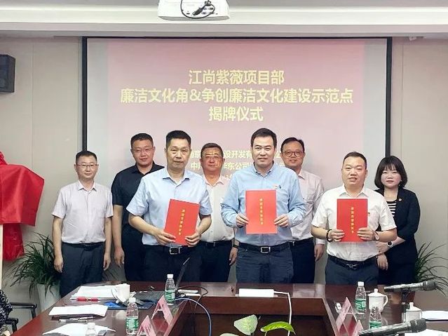 在學(xué)習(xí)貫徹習(xí)近平新時(shí)代中國特色社會主義思想主題教育中,為加強(qiáng)清廉教育,引導(dǎo)員工繃緊廉潔自律這根弦,確保工程項(xiàng)目建設(shè)廉潔高效,近日,奧體公司和江山智聯(lián)公司聯(lián)合黨總支(以下簡稱“聯(lián)合黨總支”)在江尚紫薇項(xiàng)目部創(chuàng)建廉潔文化角。相關(guān)參建單位參加。