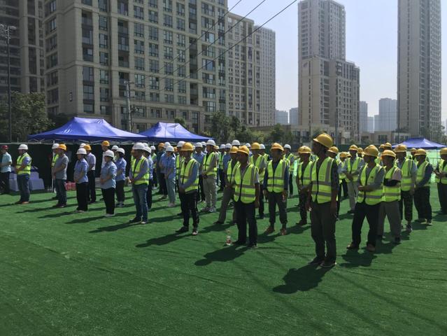 本次應(yīng)急救援演練由河西集團(tuán)新城公司承辦。模擬事故發(fā)生后,班組負(fù)責(zé)人向項(xiàng)目安全部匯報(bào)。項(xiàng)目經(jīng)理立即聯(lián)系附近雙閘街道衛(wèi)生院請(qǐng)求醫(yī)護(hù)救援,組織應(yīng)急救援工作,向監(jiān)理及甲方主要領(lǐng)導(dǎo)報(bào)告事故發(fā)生情況。隨后,有關(guān)人員及隊(duì)伍按照現(xiàn)場(chǎng)救援指揮部的指示及《高溫中暑應(yīng)急救援預(yù)案》的要求開(kāi)展救援及善后工作。