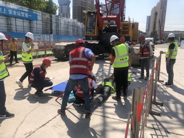 本次應(yīng)急演練活動模擬施工現(xiàn)場履帶式起重機(jī)在作業(yè)過程中由于鋼絲繩斷裂,吊物從高處掉落倒下,不幸將地面一名作業(yè)人員腳部砸傷的事故?,F(xiàn)場專職安全員發(fā)現(xiàn)后第一時間向應(yīng)急救援指揮部匯報,應(yīng)急救援指揮部立即啟動應(yīng)急預(yù)案,各應(yīng)急救援小組接到救援命令后,迅速跑向事故地點,對受傷人員開展救援工作,同時拉起警戒線,保護(hù)現(xiàn)場。救援人員按預(yù)案分工,有條不紊地實施清障、包扎、傷員擔(dān)架固定、運送上救護(hù)車等一系列動作。本次演練活動,增強(qiáng)了員工的安全操作意識,提高了快速反應(yīng)能力、應(yīng)急救援能力以及協(xié)同作戰(zhàn)能力。