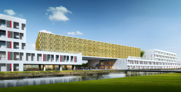河西南部(5#)九年一貫制學校項目,位于南京市建鄴區(qū)友誼街以西、鄴城路以南,毗鄰南京兒童醫(yī)院。項目總建筑面積90121.66平方米,其中地下建筑面積40237.74平方米,地上建筑面積49883.92平方米;項目整體地下1層,地上5層,建筑高度22.80米。項目規(guī)劃建設6軌36班小學和10軌30班初中,設計有機動車位861輛,非機動車位1200輛。