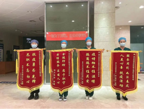 近日,河西集團南京國際博覽中心酒店“愛心賓館”再次收到了解除隔離人員贈送的4面錦旗,面面錦旗表心聲,聲聲感謝,深深信任。每一次肯定,都賦予我們更大的力量!