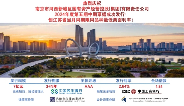 近期債券市場波動(dòng)較大,債券發(fā)行充滿不確定性,市場已有多筆債券取消發(fā)行。集團(tuán)財(cái)務(wù)管理部頂住市場壓力,多次與承銷機(jī)構(gòu)、投資者及合作金融機(jī)構(gòu)召開線上線下會(huì)議,研究發(fā)行策略,調(diào)整發(fā)行方案,最終成功發(fā)行24寧河西PPN001,24寧河西MTN004、24寧河西MTN005(永續(xù)中票)三筆債券,募集資金22億元,平均融資成本2.56%,低于最新一年期LPR利率54BP,更進(jìn)一步優(yōu)化了集團(tuán)債務(wù)期限結(jié)構(gòu)和品種結(jié)構(gòu),充分體現(xiàn)出集團(tuán)對融資品種的靈活運(yùn)用。